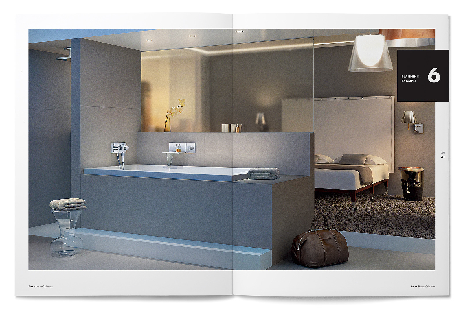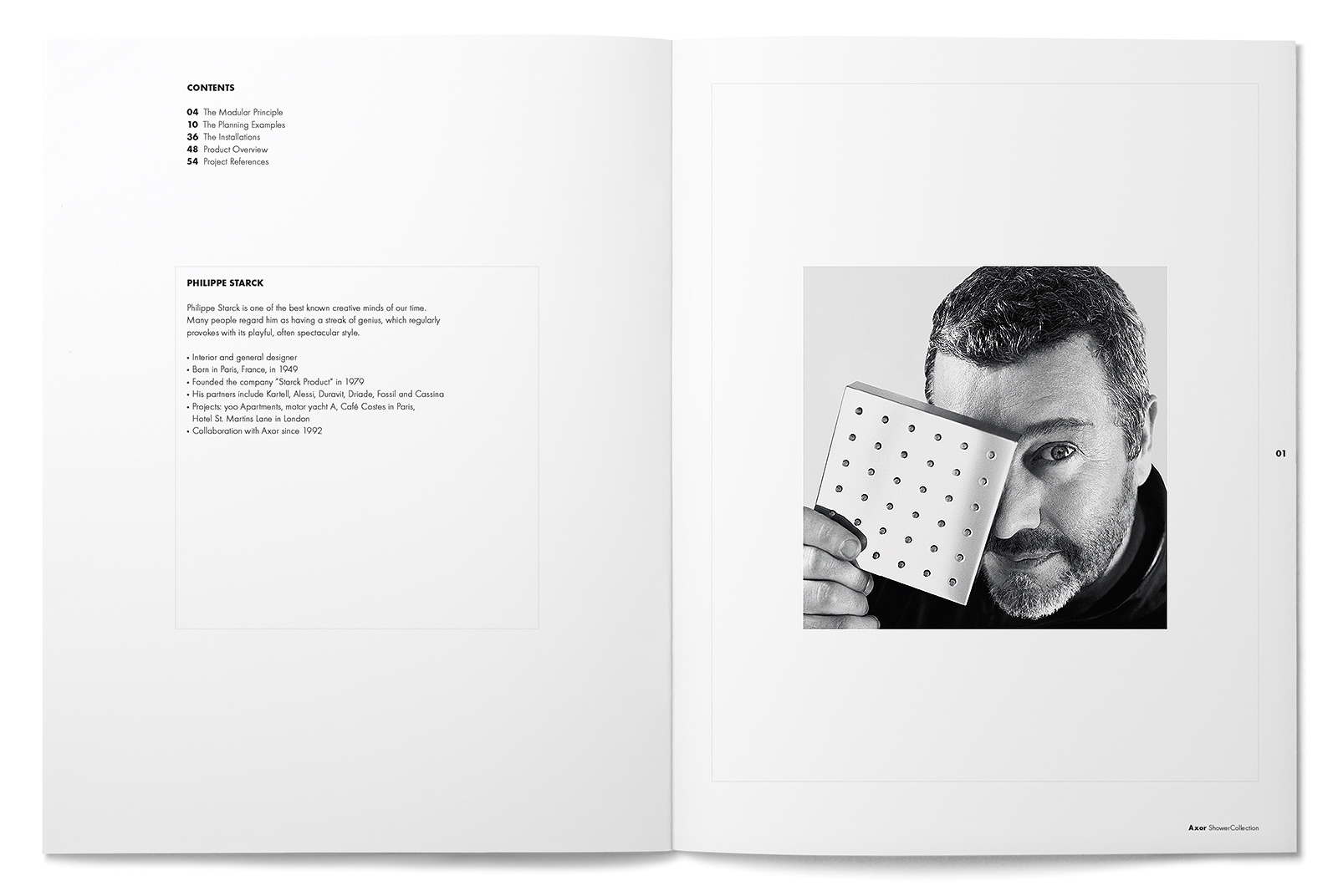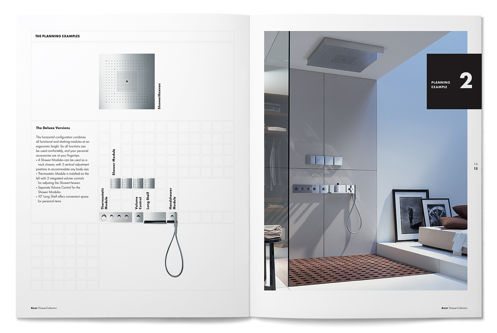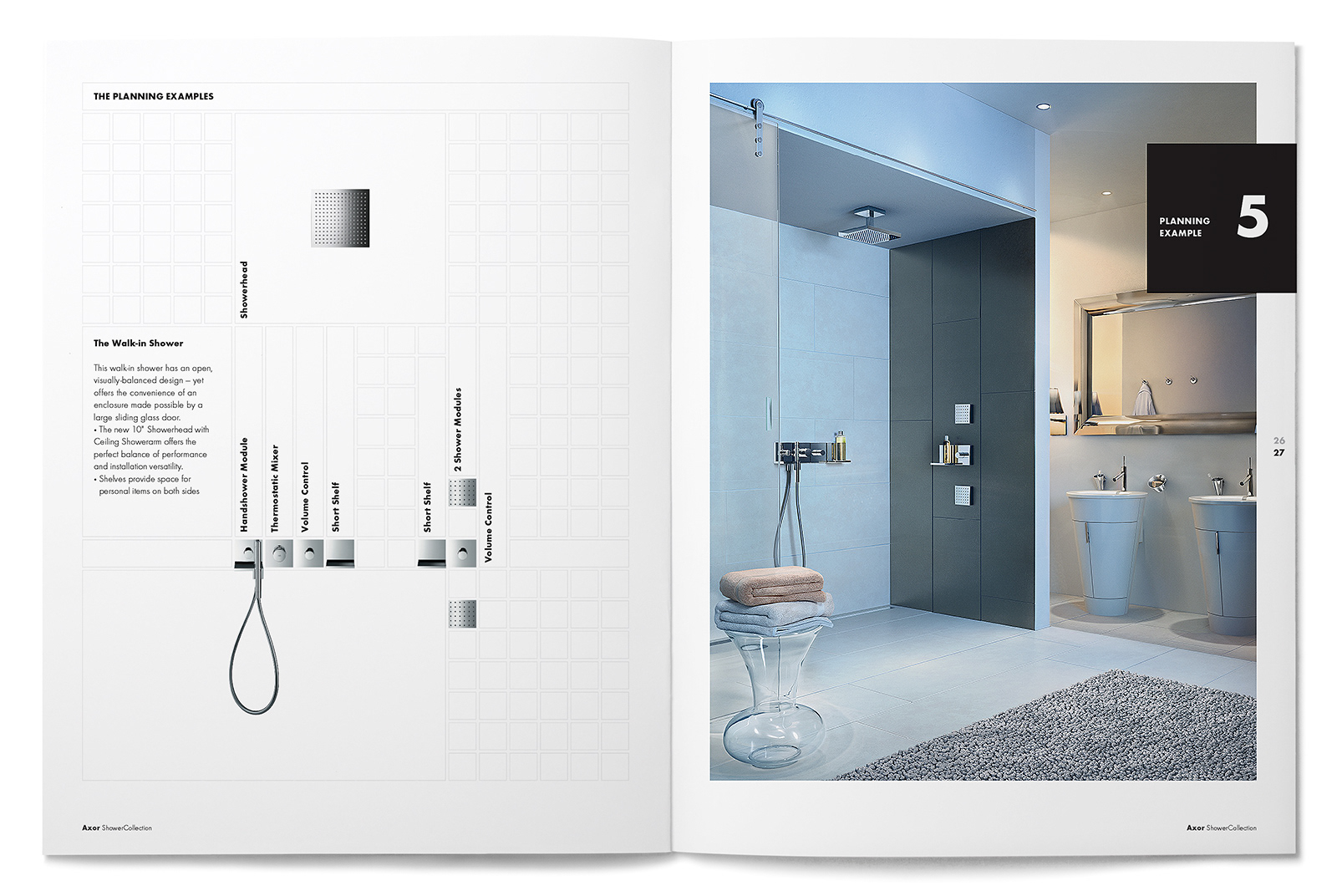 We were asked to reinterpret the European-worded and sized Axor ShowerCollection brochure design from their German headquarters into a manner that would fit the U.S. page sizing and language. We refined the small outlined square page grid and typography usage while staying true to the design and branding intent from Germany.