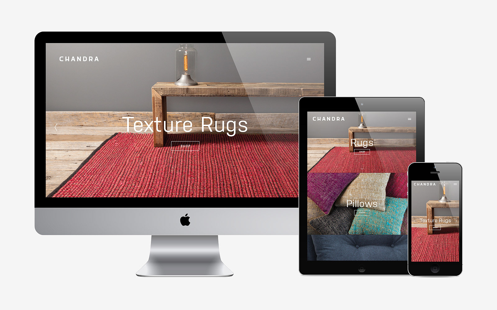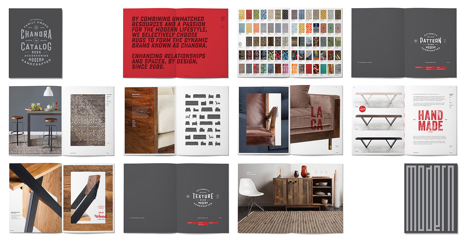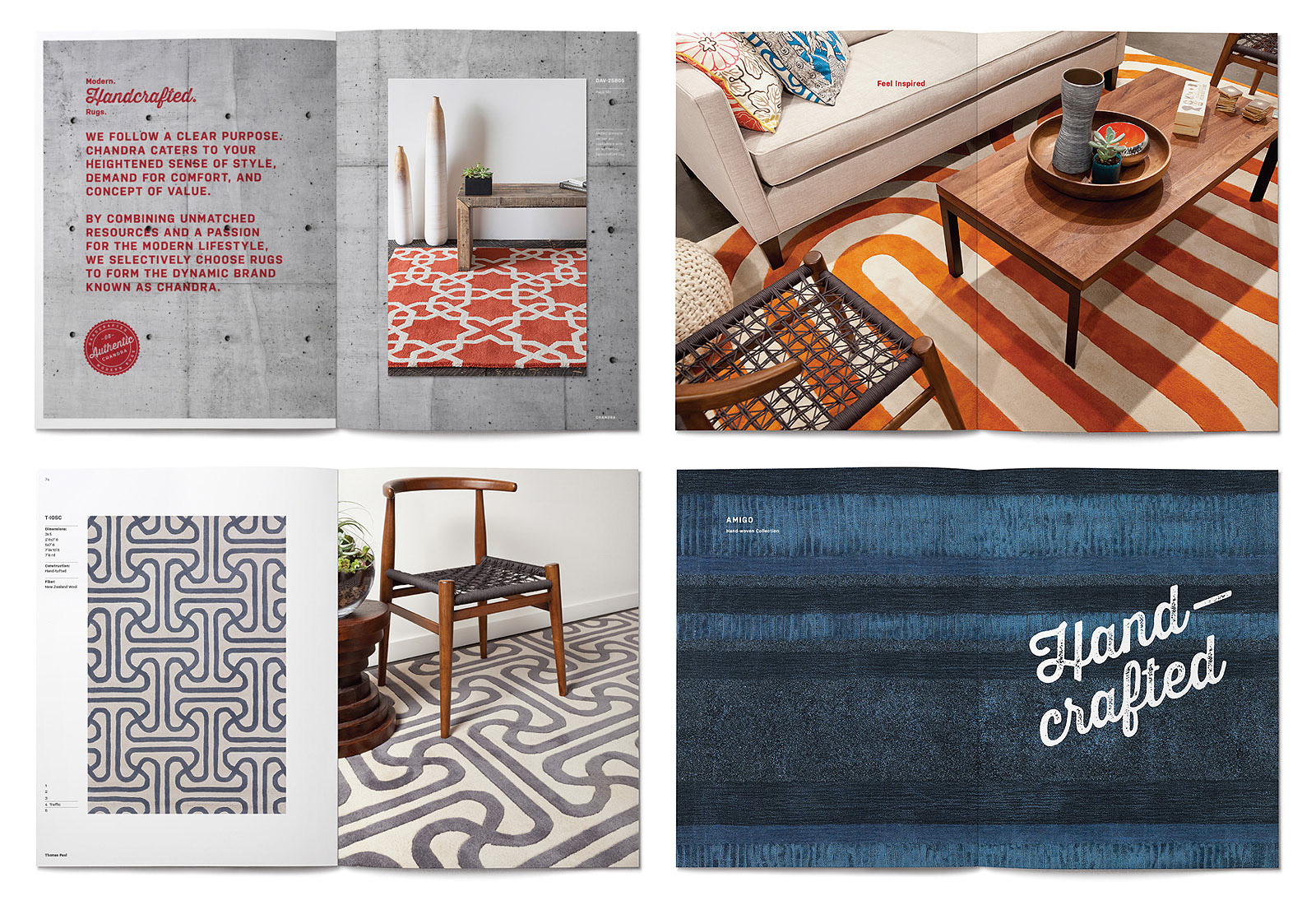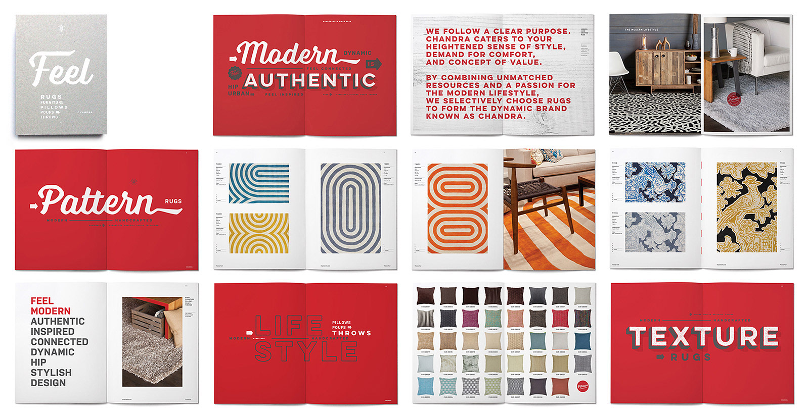As providers of modern, handcrafted rugs, Chandra asked us to refresh their brand in a manner that reflected the company’s core values and their textural products. We created a new customized logotype, a visual identity system built around the key meanings and associations of the “Chandra” name and then applied that system to numerous touchpoints to elevate their brand awareness and to establish a consistency in look and message. Design applications included identity, stationery, brochures, catalogs, showrooms, web, advertising, signage, premiums, packaging, social media and more.
