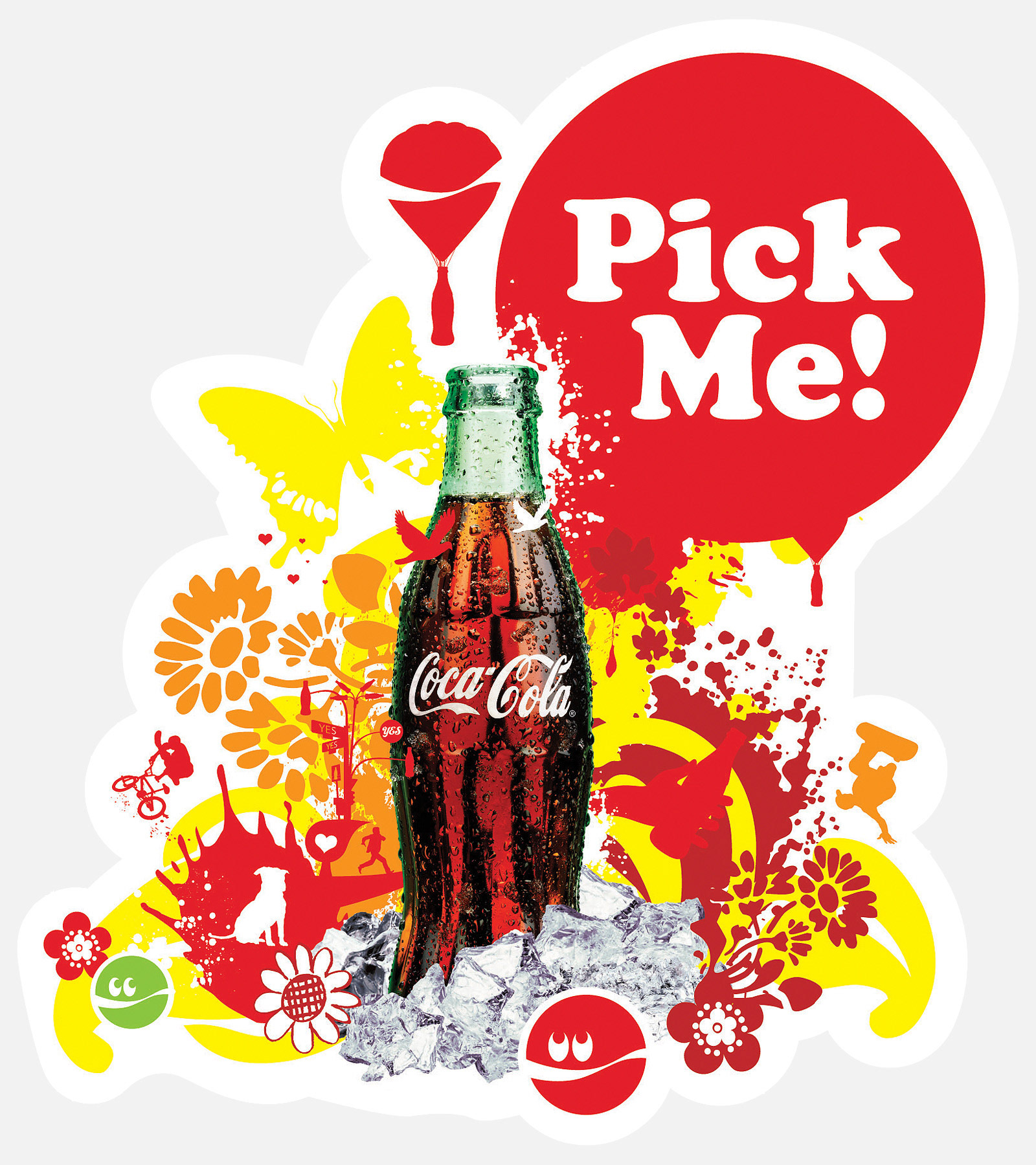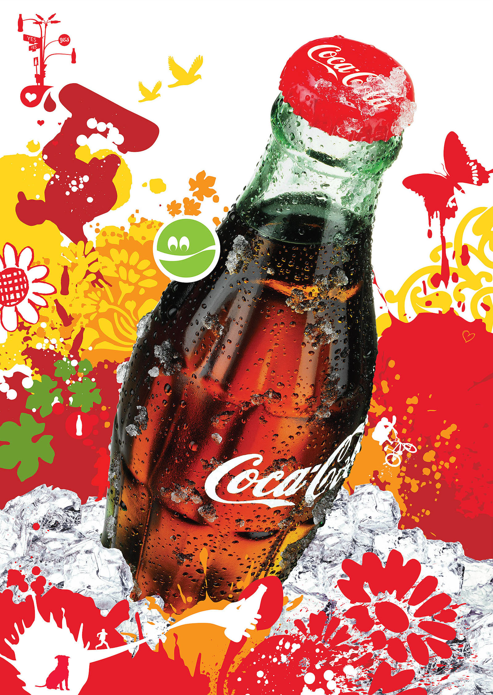 We bridged the Coca-Cola visual identity system with that of the Coke Side of Life campaign by combining the contour bottle and ice imagery from the Coca-Cola VIS with the campaign’s expressive illustrations. All elements were supplied by Coca-Cola.