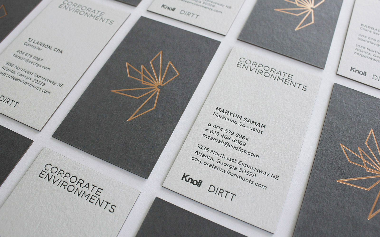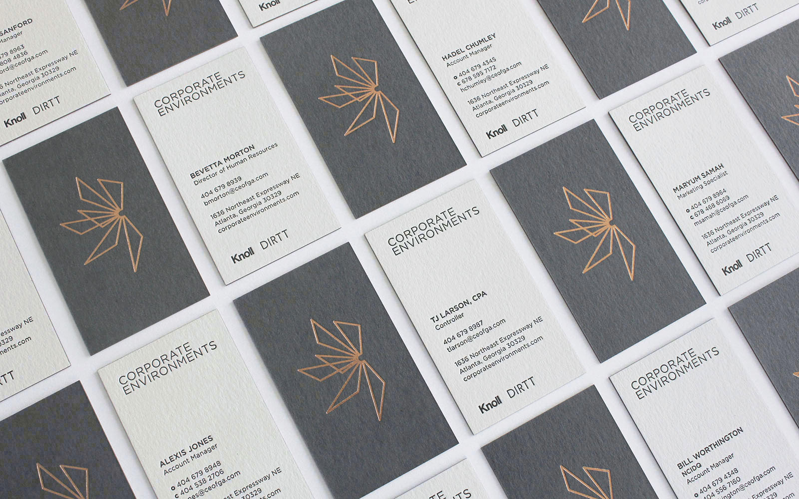 After the successful launch of their new showroom, CE asked us to capture the showroom’s use of the newly revised logo, typography, marble and wood walls, and other branding details into a visual identity system and guidelines document. These elements were used to build the color palette, font styling, image backgrounds and patterns. An image library of their showroom and the products they represent was curated for use in collateral and 50 notecards housed in a custom pouch. This library allows CE to function in a sophisticated neutral environment with flexible, strong pops of color when communicating with their designer and architect audience. Furthermore, most of their stationery and support items have a tactile, sensory experience through the use of textured paper, foil stamping, letterpress and metallic edge painting.