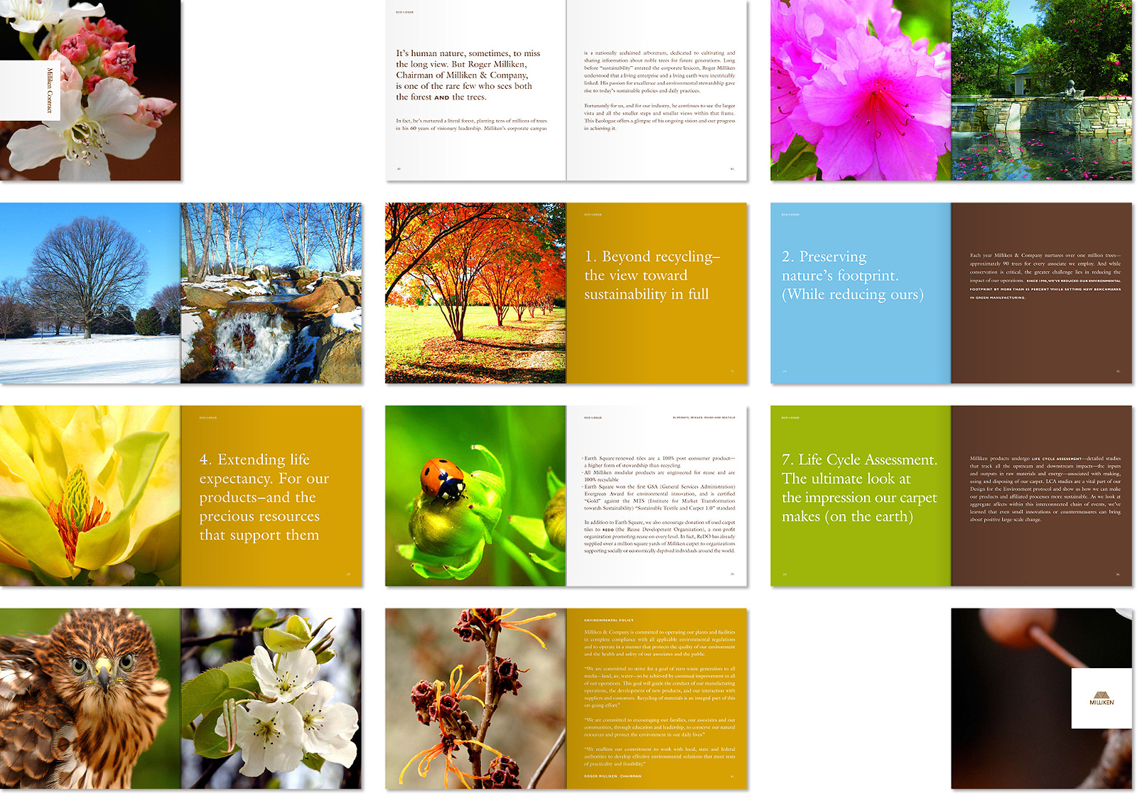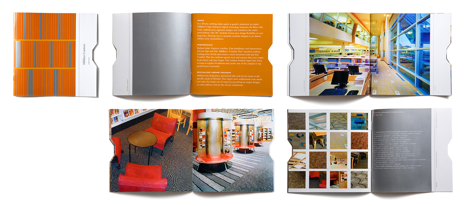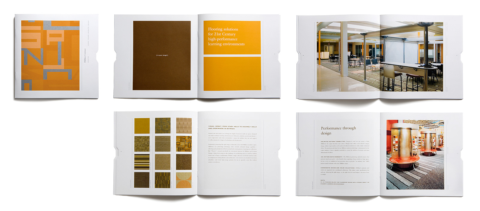 We were approached by Milliken to evolve their commercial flooring identity to reflect their new name while keeping the existing typographic styling. We refreshed their logo, segment brochures, website, showroom, trade shows, product logos and more.