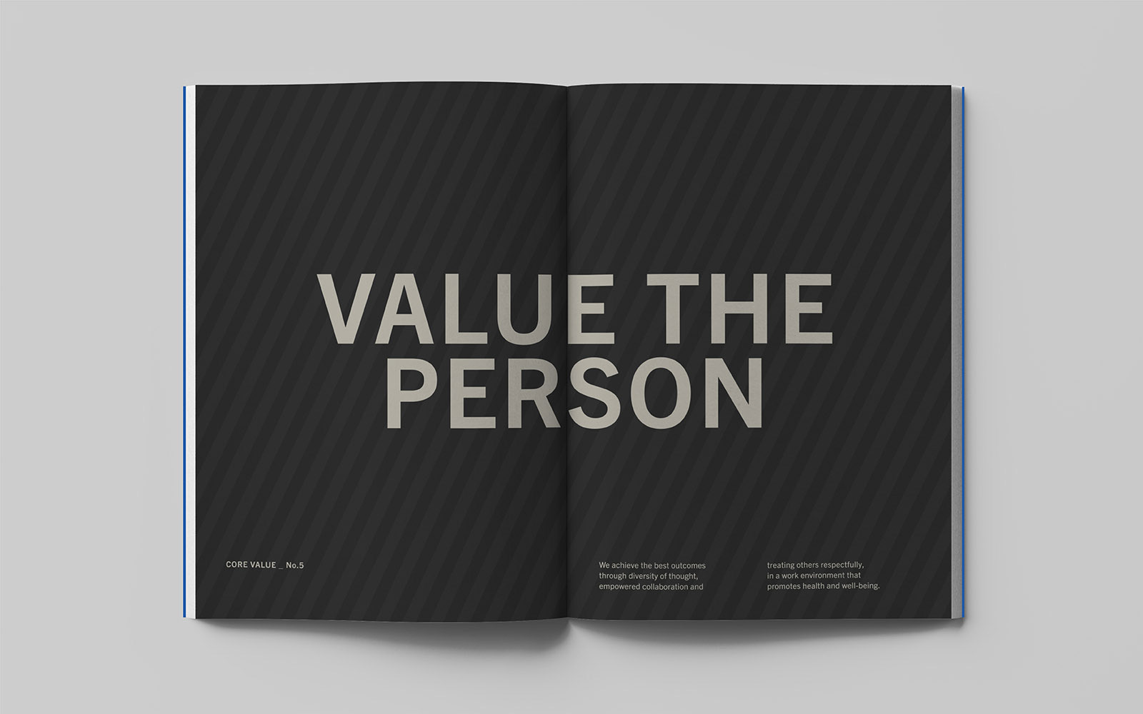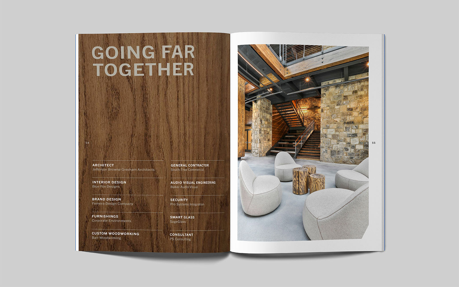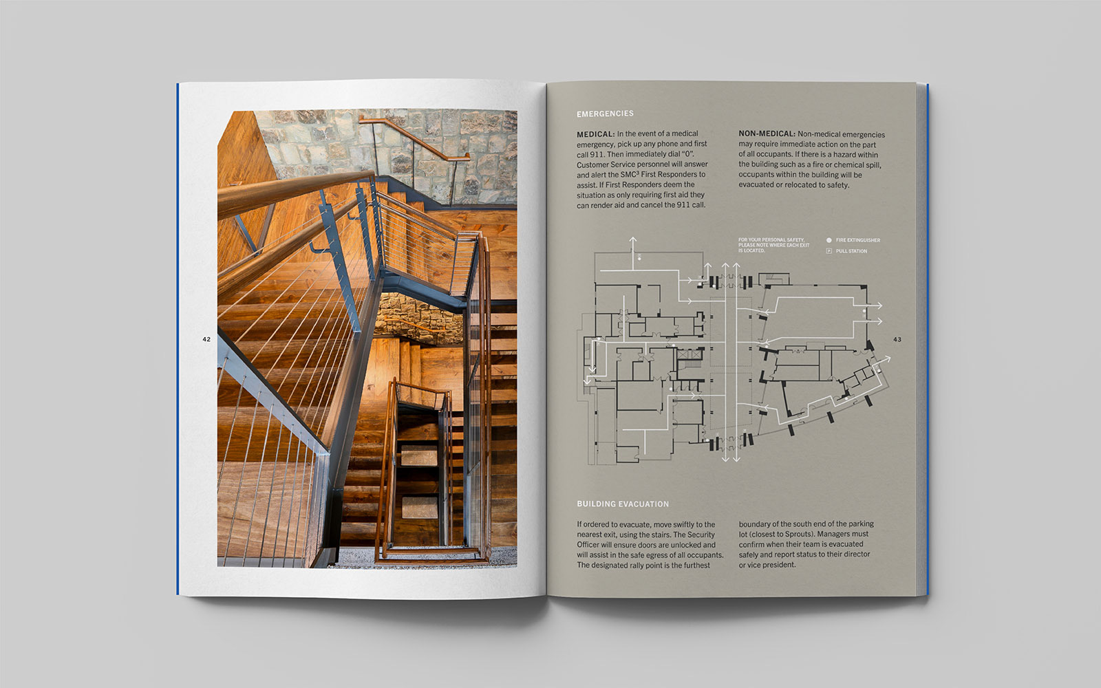 SMC3 is the transportation industry leader using intelligent data, technology and education to connect and empower their industry. They asked us to extend their brand message throughout their new corporate headquarters and launch brochure. After analyzing the SMC3 story, “movement" quickly became a central conceptual platform, in context of how SMC3 optimizes freight transportation and advances the industry through progress and innovation. We refreshed their symbol and called it “the arrow” for its strong visual language of forward motion, momentum and direction. The symbol drove the new identity system by repeating its specific angle to create the striped patterns.