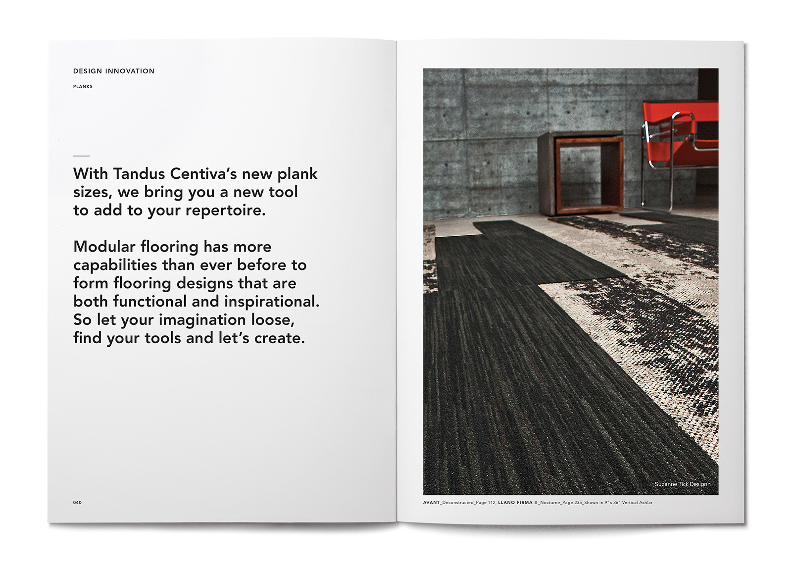 After the acquisition of Tandus Flooring and Centiva by Tarkett, the two brands were unified under one combined name. We were asked to capture the individual aspects of each company into a cohesive new logo. We created a stylish, customized logotype to give the new company the foundational sophistication needed to communicate their design-sensitive brand message. We refreshed the brand’s colors, typography, stationery, portfolio system, product catalogs, brochures, trade shows, packaging and signage.